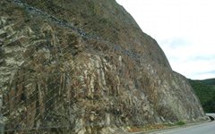 KN)編制并在結(jié)點處用專用“十字扣”固定而成,為邊坡防護網(wǎng)的主要特征構(gòu)件之一,在主動防護中通過鋼絲繩網(wǎng)的覆蓋來實現(xiàn)邊坡的加固,其開放特征可以實現(xiàn)對坡面天然植被和植被生長條件的**佳保護,實現(xiàn)環(huán)境保護與災(zāi)害治理的有機結(jié)合;在被動防護系統(tǒng)中,其柔性特征充分體現(xiàn)了“...
